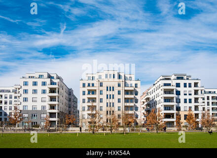 Blick auf Gleisdreieck Park mit modernen neuen Luxus-Wohnungen angrenzenden in Berlin ...